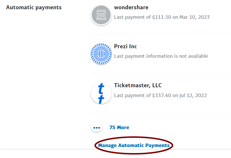 Step 4: Click on "Automatic payments" to update your preapproved payments (including subscriptions).