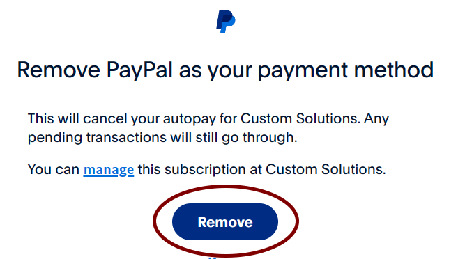 Step 6: Scroll down and click on "Remove PayPal as payment method".